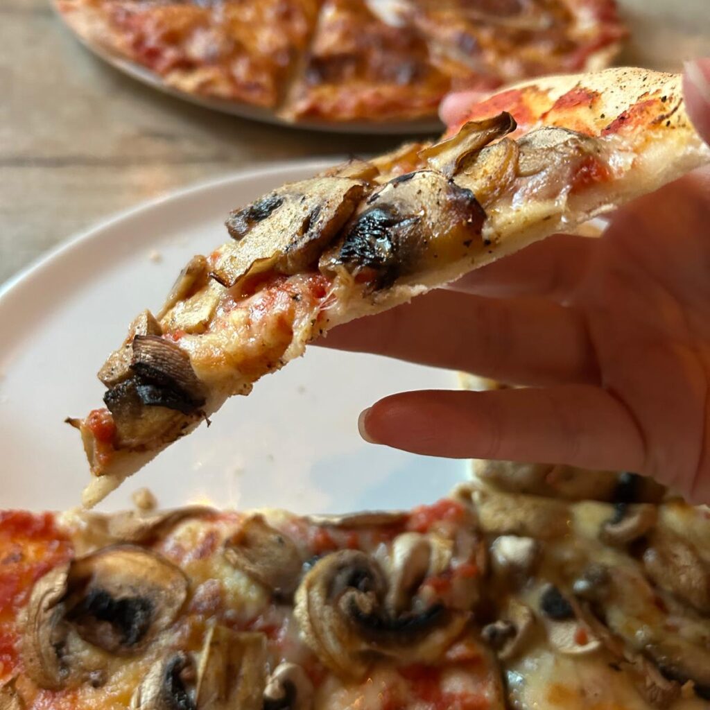 Het Italiaanse restaurant voelde meteen goed aan: sfeervol, vriendelijk personeel en vooral veel glutenvrije opties! Behalve de shoarma- en kippizza konden alle pizza’s glutenvrij worden gemaakt. Echt een feestje voor ons! Lotte koos voor een salami pizza en ik ging voor de funghi. De rest van de familie koos glutenrijke pizza’s en mijn neefje van vier concludeerde: “Jullie moeten glutenvrij omdat jullie allergisch zijn en wij niet, want wij kunnen niet tegen glutenvrij!” Heerlijk die kinderlijke logica.