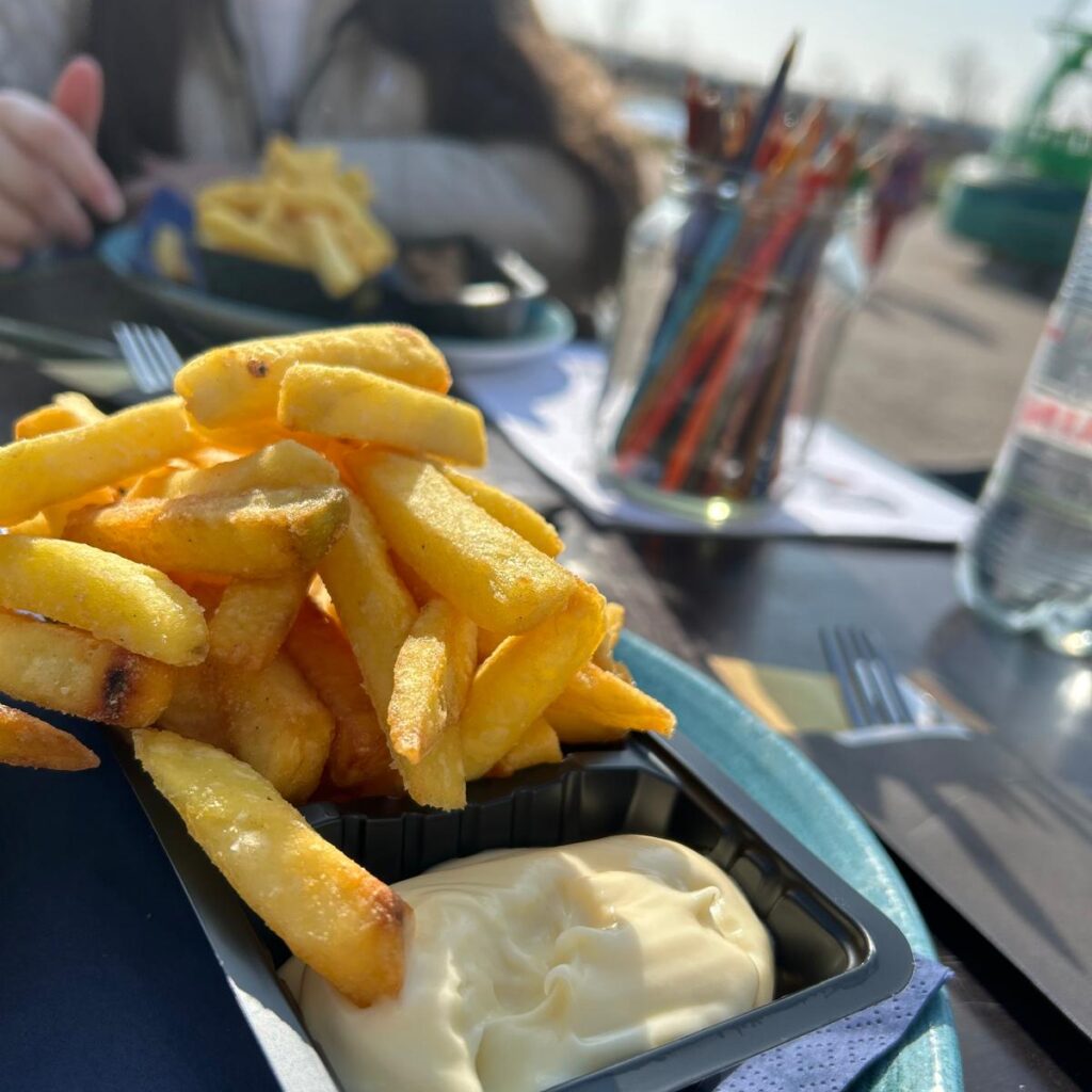 Zondagochtend pakten we vroeg onze spullen en checkten uit. We brachten nog wat tijd door in de binnenspeeltuin van het park, die iets kleiner was dan die van Landal, maar nog steeds leuk. Na een paar potjes airhockey en basketbal lunchten we met glutenvrije frietjes, omdat er geen andere opties waren.