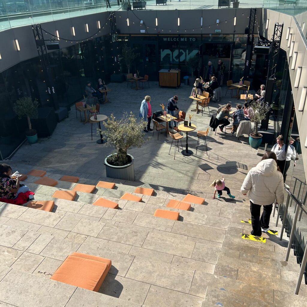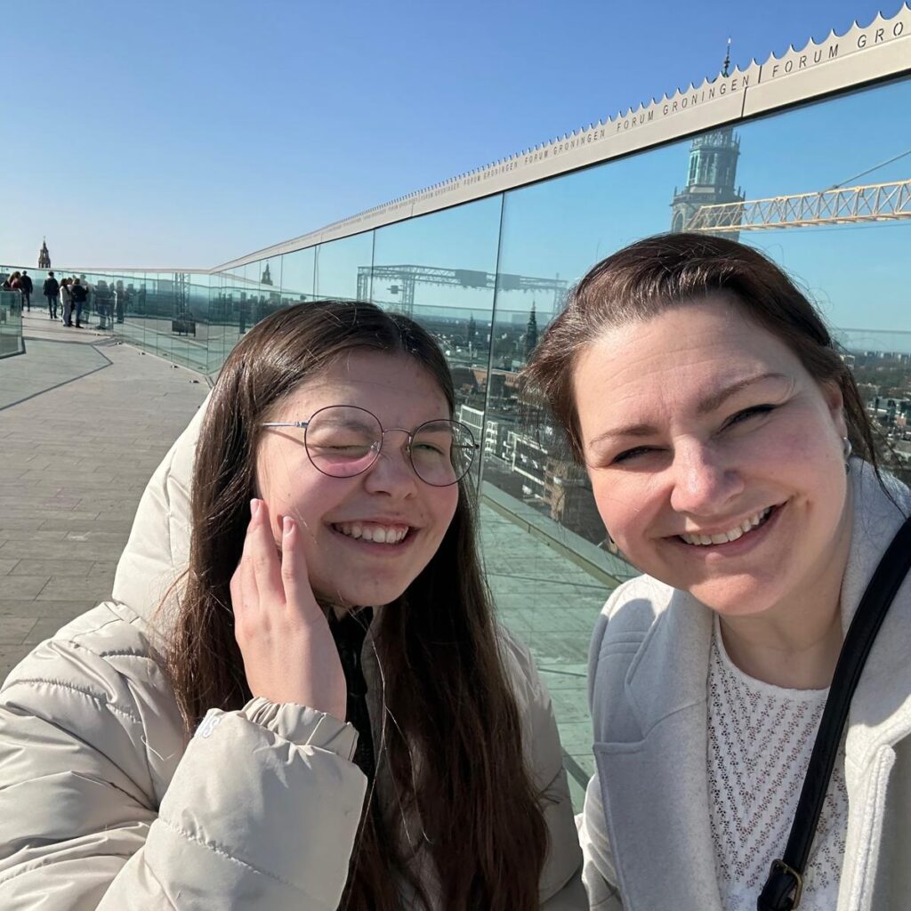 Onderweg naar ons glutenvrij weekend in Lauwersoog maakten we (Rob, Lotte en ik) een tussenstop in Groningen. Omdat we weinig tijd hadden en de zon volop scheen, besloten we naar het Forum te gaan voor het uitzicht over de stad. Dit indrukwekkende gebouw heeft een bibliotheek, rooftopbar, restaurant en zelfs studeerplekken. Wij wilden vooral het dakterras bewonderen, maar dat liep anders…